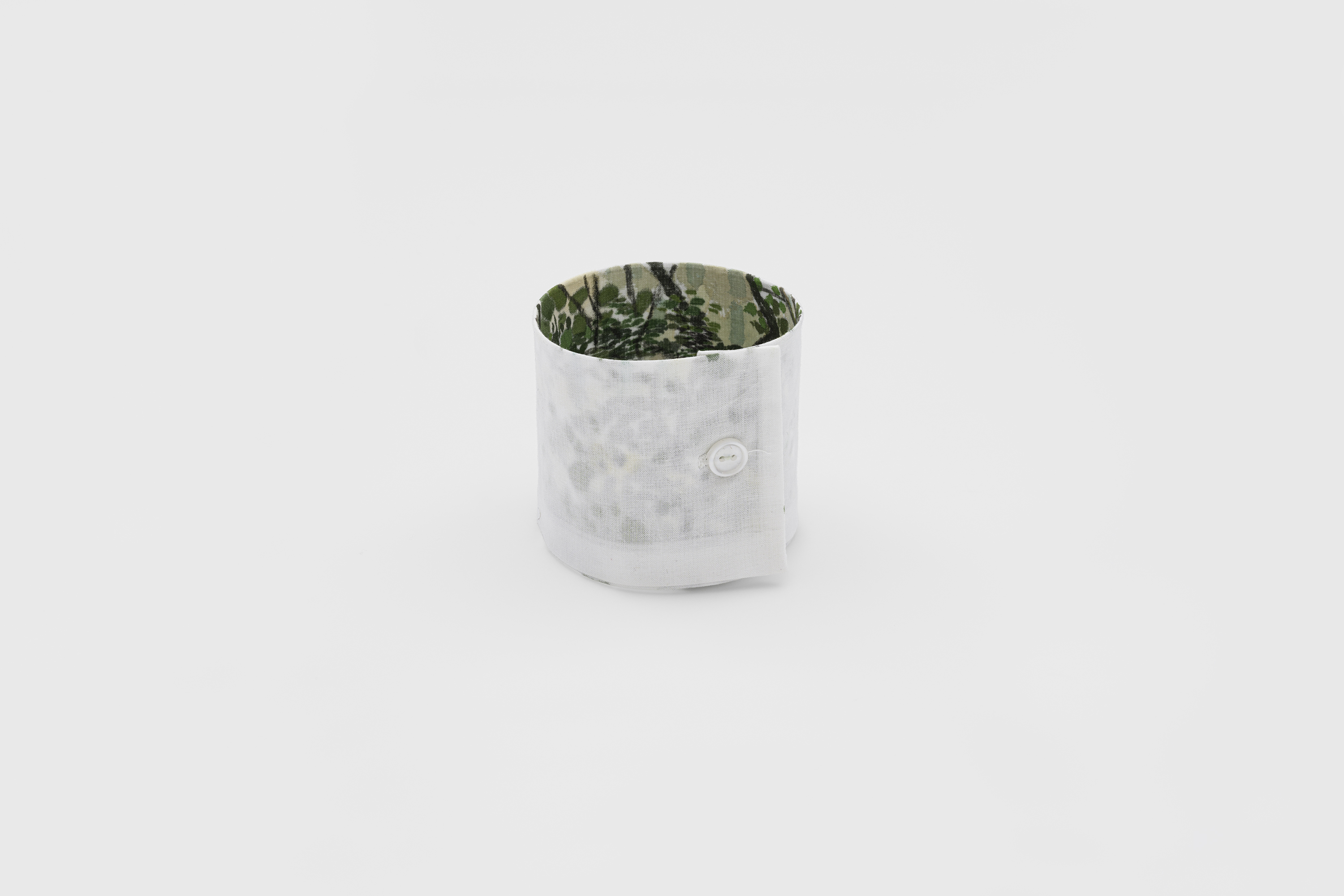 In Alteration, this metaphor is made literal. Stiffened shirt cuffs, embedded with interfacing on both sides, become unlikely supports for landscape paintings executed en plein air—a genre historically reserved for leisure-class artists, here repurposed as a form of remote work. Created across seasons, the watercolor paintings are time-bound documents shaped by weather, stamina, and access to food or restrooms—humble constraints that foreground the body’s ongoing negotiation with space, labor, and care.